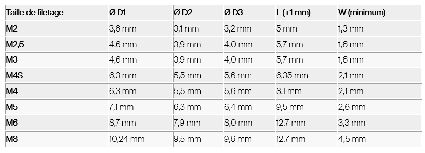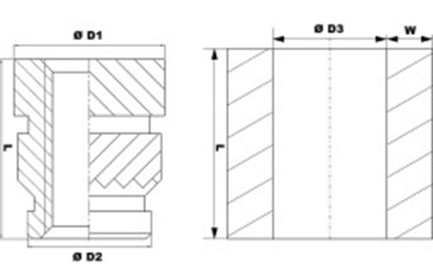 - Use the exact hole dimensions provided by the insert manufacturer, like hole diameter (D3), depth (L) and minimal wall thickness (W) around the hole.